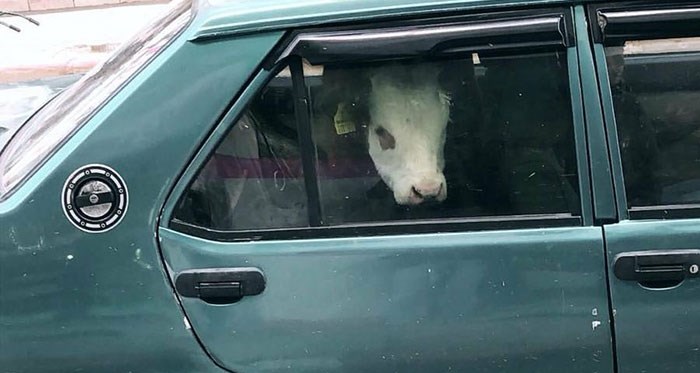 Kentin en işlek caddelerinden olan Ambaryolu’nda çekilen bu fotoğraf sosyal medyada kısa sürede yayıldı. Binek bir otomobile büyükbaş ineğin yavrusu olan buzağının bindirildiği görülürken manzarayı görenler cep telefonlarına sarılarak bu ilginç yolcuyu fotoğraflaştırdılar. Bir vatandaşın büyükbaş hayvanı aracının arka koltuğuna bu şekilde bindirmesine anlam veremeyen görenler gülmekten kendini alıkoyamadı.