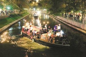 Eskişehir'in düşman işgalinden kurtuluşunun 91. yıl dönümü etkinlikleri çerçevesinde Porsuk Çayı'nda teknelerle fener alayı geçişi yapıldı.