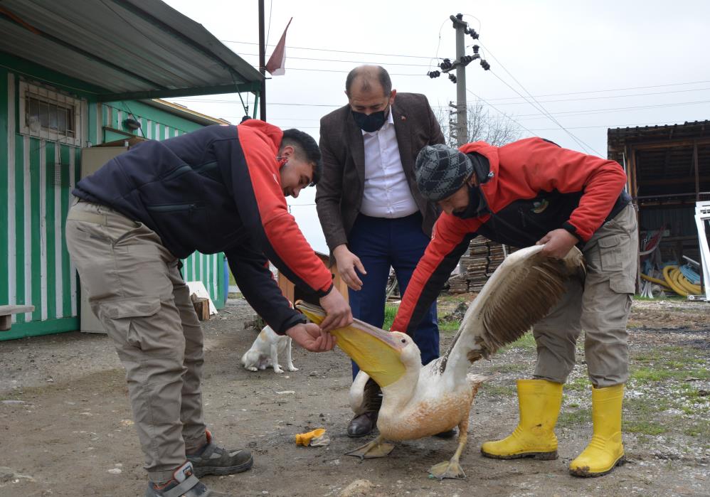 Göç yolunda yaralanan pelikan yapılan ilk müdahalenin ardından İlçe Tarım Müdürlüğüne teslim edildi. Burada tedavisi tamamlanan pelikan Doğa Koruma Müdürlüğü ekiplerince teslim alındı.