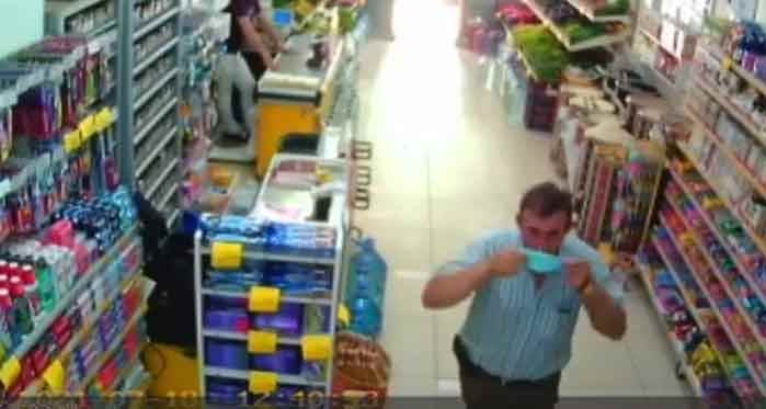 Bursa'da bir kişi maskesiz girdiği markette uyarılınca çorabından çıkarttığı maskesini takarak alışverişine devam etti. Herkesi güldüren anlar güvenlik kamerasına yansıdı.