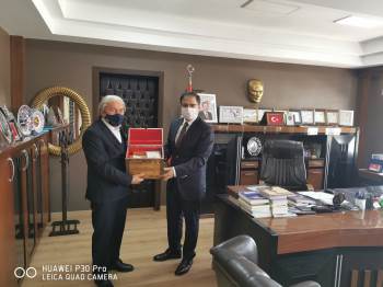 Osmaneli Belediye Başkanı Münür Şahin, eski Osmaneli Kaymakamı olan, Bursa’nın Gürsü ilçesi kaymakamlığı görevini yürüten Naif Yavuz’a ’Fahri Hemşehrilik Beratı’ takdim etti.