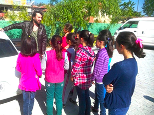 Kümbet Mahallesinde bulunan Şehit Ekrem Saygı İlkokulu öğrencileri sabaha derse geldiklerinde karşılarında ünlü sanatçı Halil Sezai’yi gördüler.
