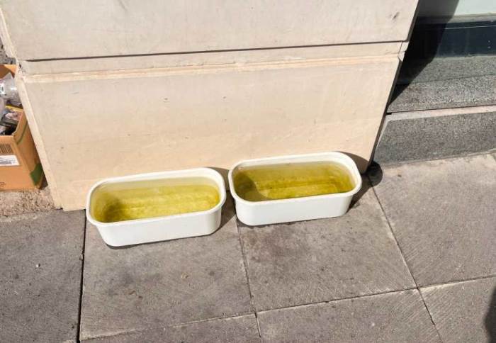 Eskişehir’in en işlek noktalarından Hamamyolu Caddesi’nde bir esnaf, sıcak havalarda susuz kalmamaları için dükkânının yanına sokak hayvanları için su kabı koydu.