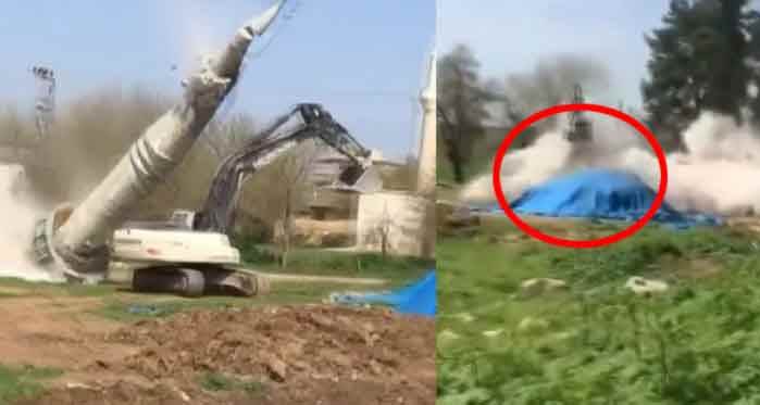 Olay, dün öğle saatlerinden sonra Gaziantep'in Oğuzeli ilçesi kırsal Yakacık Mahallesi'nde meydana geldi. İddiaya göre, Kahramanmaraş Pazarcık merkezli 7.7 ve Elbistan merkezli 7.6'lık iki büyük depremde hasar alan mahalledeki cami minaresi için yıkım kararı alındı. Yıkım kararı sonrası harekete geçen ekipler, minarenin kontrollü yıkımı için çalışmalara başladı.