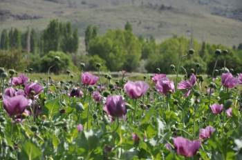 Türkiye’nin önemli haşhaş üretim merkezlerinden olan Sandıklı’da Mayıs ayında çiçek açan haşhaşlar yoldan geçen fotoğrafçılarında uğrak yeri oluyor. Kozmatik, tıp ve yemeklik gibi birçok alanlarda kullanılan haşhaş yağı ile de sofralarda damakları şenlendiriyor. İlçeye bağlı Bekteş Köyü Muhtarı Mehmet Bayar, “Gelir kaynaklarımızın arasında çiftçilik yapıyoruz, yöremize özgü haşhaşlardan mor çiçek açan haşhaş siyah, beyaz ve sarı tohumlu olan haşhaşlarda beyaz renkte çiçek açar. Bölgemize özgü olan bu haşhaş bitkisi yılın Nisan, Mayıs aylarında doğaya güzel bir görüntü yapar. İnsanlar beyaz ve mor çiçekler arasında fotoğraf çektirirler güzel bir görüntü verir doğaya. Bu bitki çiçeği açtıktan sonra kapsül yapmaya başlar. Zamanla bu kapsül olgunlaşır ve hasayı yapılır. Haşhaşın kapsülünü devlete, tohumlarını da tüccarlara satıyoruz. Bölge olarak Sandıklı’nın her sene ekim kotası 28 bin dekardır. Bunun tamamı, ekilmiyor aşağı yukarı 23 bin dekar alanda ekim yapılıyor. Haşhaş aşama aşama oluşuyor. Bu zamanlarda doğaya çok güzel bir görüntü oluşturur. Haziran’ın sonuna doğru kapsüller olgunlaşır ve sararmaya başlar. Temmuz’un 20’inden sonra kırımları başlar. Kırım sonunda makinalar ile haşhaş ve kapsül ayrılır. Sezon sonunda kapsülünü Toprak Mahsulleri Ofisine teslim ederiz. Haşhaşı da kendimiz tüccara satıyoruz. Geçen yıl kilogramı 12 liradan başladı 18 liraya kadar çıktı. Yılın son aylarına doğru da 20 lira oldu” dedi.