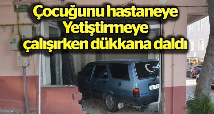 Bursa'da çocuğunu hastaneye götürmek için aşırı hız yapan sürücü sokak arasında bulunan bir kıraathaneye daldı. Şans eseri kıraathanede kimsenin olmaması olası bir faciayı önledi.
