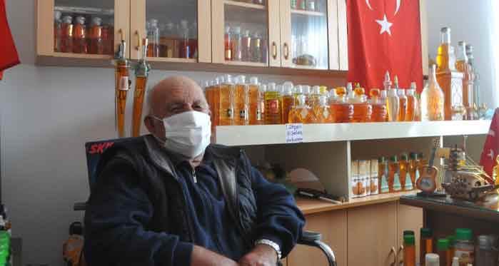 Samsun’un Alaçam ilçesinde yaşayan 78 yaşındaki Necmi Hopaç, eşinden habersiz biriktirdiği 3 bin şişe kolonyaya gözü gibi bakıyor. Gününün büyük bir bölümünü kolonya şişelerini seyretmekle geçiren Necmi Hopaç, korona virüsünden dolayı kolonyaya talep artınca bir kısmını yakınlarına dağıttı.