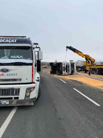 Hayvan Yemi Yüklü Kamyon Devrildi