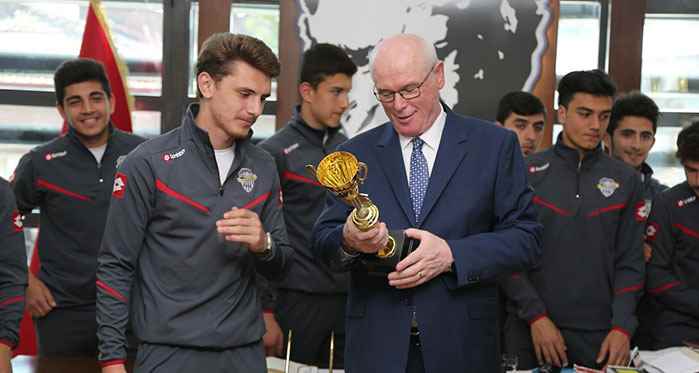 Başkan Kurt, Odunpazarıspor’un başarısından dolayı sporcuları tebrik etti. Spora ve sporcuya her zaman destek vereceklerini bir kez daha hatırlatan Kurt, “Bizim amacımız sizin gibi başarılı sporculardan profesyonel sporcular çıkarmak istiyoruz. Eskişehirspor’un yeni stadyumunu hepiniz biliyorsunuz. İşte orada oynamayı hayal edin. Başarılarınızın devamını dilerim. Türkiye Şampiyonası’nda da büyük bir başarıyla şampiyon olarak geleceğinize inanıyorum” ifadelerini kullandı.