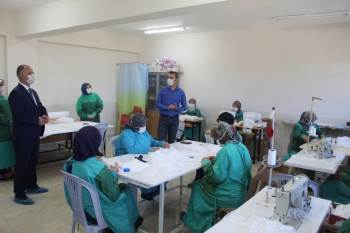 10 bin maske hedefiyle üertime başlatılan bu faaliyette şimdiye kadar 6 bin maske üretildiğini belirten Kaymakam Çiçek, ’’Günlük ortalama 500 maske üretimi yapılıyor. Bildiğiniz gibi tüm dünya virüs tehlikesinden geçiyor. Dünya Sağlık Örgütü de buna pandemi niteliğini koydu. Bundan en az zararla çıkmak için devletimiz süreci çok iyi yönetti. Bizler yereldeki yöneticiler olarak da, sağlıklı kalabilmek açısından hem bireysel hem de toplumsal hijyenimize dikkat ederek, sosyal mesafemizi koruyarak, yapmak zorunda olduğumuz işlerimiz dışında mümkün olduğunca evde kalarak bu tehlikeyi millet olarak en az zararla atlatacağız. Bu millet aziz bir millettir, sağduyulu bir millettir. Bu arkadaşlarımız bizim görünmez kahramanlarımız” dedi.