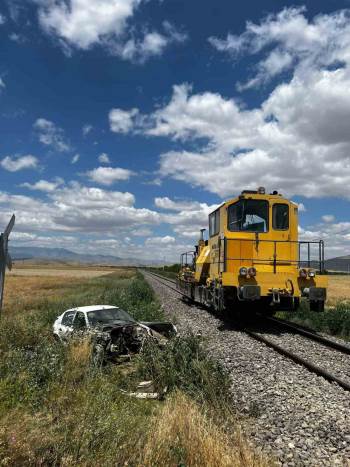 Afyonkarahisar’Da Demiryolu Bakım Aracının Hemzemin Geçitten Geçmeye Çalışan Otomobile Çarpması Sonucu Yaşanan Kazada 3 Kişi Yaralandı.