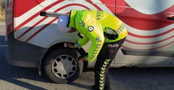 Lastik derinlik ölçme kumpası ile yapılan ölçümlerde lastik derinliği 1,6 milimetrenin altında kalan araç sürücülerine bin 152 TL idari para cezası kesiliyor. Trafik denetleme ekipleri, vatandaşların can ve mal güvenliğini korumak adına kış lastiği denetimlerinin aralıksız süreceğini belirttiler.