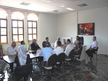 Toplantıya Belediye Başkanı Fatih Çalışkan, İlçe Jandarma Komutanı Osman Erdoğan, İlçe Emniyet Amiri Mehmet Akbulut, İlçe Milli Eğitim Müdürü İlhan Cebeci, Şube Müdürü Mehmet Ali Özdemir, okul müdürleri ve daire amirleri katıldı.