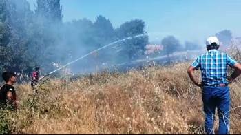 Bu arada yangının diğer ekili alanlara sıçramasını önlemek amacıyla yanan alan traktörlerle sürüldü.