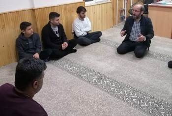 Çimenlik Camiinde İmam Hatip Ali Sevinç’in ilgi ve teşvikleri ile imam odasında namazdan önce ve sonra İlçe Müftüsü Sebahattin Akyol, depremzedelere mübarek günler hakkında açıklama yaptı. Daha sonra da depremzedelerle özel hasbihalde bulundu.