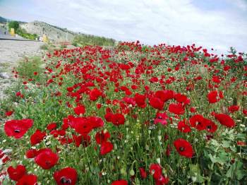 Hisarcık ilçesinde Gediz karayolu kenarındaki gelincik çiçekleri kırmızı görüntüsüyle görsel şölen sunuyor.