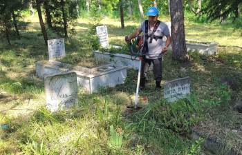 Hisarcık Belediyesince ilçe mezarlığında Kurban Bayramı öncesinde ot biçme ve bakım çalışmaları gerçekleştirildi.