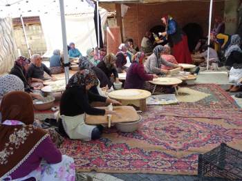 Gözleme yapan kadınları ziyaret eden Kaymakam İsmail Tosun, Belediye Başkanı Mustafa Demirtaş bir süre kadınlarla sohbet ederek özverili çalışmalarından dolayı teşekkür etti.