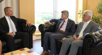 Üniversitenin Rektörlük makamında gerçekleşen görüşmede, Ertuğrul Turan’ı Rektörle birlikte, Rektör Yardımcısı Prof. Dr. Muammer Gavas ve Genel Sekreter Vekili Doç. Dr. Atilla Batur karşıladı.
