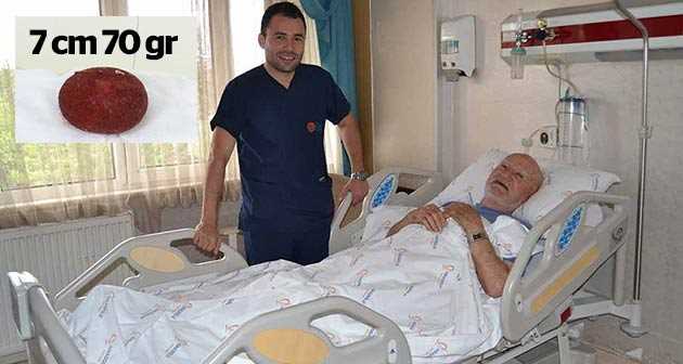 Özel Eskişehir TSG Anadolu Hastanesi Üroloji Uzmanı Opr. Dr. Kutlu Teberik, 92 yaşındaki erkek hastanın idrar kesesinde 7 santimetre çapında taş aldıklarını söyledi.