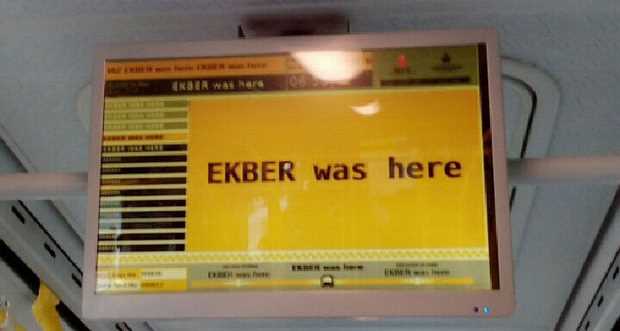 İstanbul Elektrik Tramvay ve Tünel İşletmeleri Genel Müdürlüğü (İETT) sistemi hacklendi. Sabah saatlerinde İETT'nin sitesine girenler ve toplu taşıma araçlarındaki ekranlarına bakanlar "EKBER was here" yazısıyla karşılaştı.