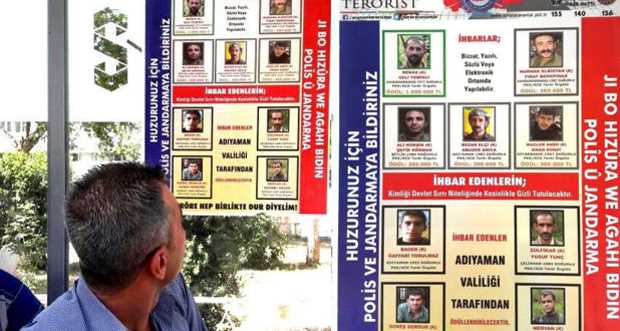Polis ve jandarma ekipleri tarafından yaklaşık 2 ay önce hazırlanarak yayınlanan 5 kişilik terörist listesi yenilenerek, 4 kişi daha ilave edildi. PKK/KCK terör örgütü mensuplarından Adıyaman kırsalında oldukları tespit edilen 9 kişilik terörist grubun fotoğrafları afişe edildi. Otobüs durakları ve kent merkezindeki işlek caddelere asılan afişlerde, teröristlerin fotoğrafları ve isimleri yer alıyor.
