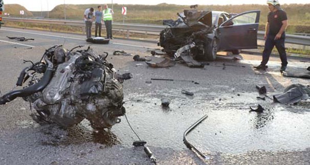 Kuzey Marmara Otoyolu Başakşehir mevkii Ankara istikametinde meydana gelen trafik kazasında bir kişi hafif yaralanırken, bir kişi ise ağır yaralandı. Olay yerine gelen ekipler aracın motorunu yol ortasından bulurken otomobilden içki şişeleri çıktı.