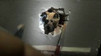 Videoyu Aç İki Apartman Arasındaki Boşlukta Mahsur Kalan Kedi Duvar Delinerek Kurtarıldı