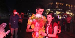 Eskişehir’de, 3,5 yıldır arkadaşlık yaptığı sevdiği kıza, Eskişehirspor’un 50 kuruluş yıl dönümü kutlamaları sırasında kız kardeşleri ve kuzenleri ile birlikte planladığını pankartlı, meşaleleri evlenme teklifi yapan genç, aldığı “Evet“ cevabı ile iki mutluluğu aynı gece yaşamış oldu.