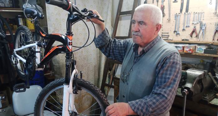 Emekli öğretmen Osman Menekşe, bisiklet tamir ettiğini ancak asıl mesleği öğretmenlik olduğundan merak duyduğunu dile getirerek, "Dükkana gelen müşterilere, 'Ya sen niye bisiklete biniyorsun?' diye sordum. Her defasında farklı cevaplar aldım. Kimisi cebine dolmuş parası kaldığını, kimisi zaman tasarrufu ettiğini ve kimisi de spor yaptığını söylüyor. Ancak buradaki en önemli detay zaman. Zaman o kadar önemli ki, daha da geri gelmesi mümkün olmayan bir şey. Mesela ben yaklaşık 68 yıldır bisiklete binerim. Her gün en aşağı 2 saat kazanıyorum. Bir yerden gelirken ya da giderken zamandan kazanıyorum. Bir hesap yaptığımda da bisiklet ile yaklaşık 20 bin saat tasarruf yaptığımı tespit ettim. Peki ben bu zamanı nerede kullanmışım? Genellikle erkenden okuluma gittim. Parayı da kazanabilirsin ama bunu zaman içerisinde yaparsın. Yani bisiklet hem sağlık hem zaman hem de para kazandırıyor. Vatandaşlardan da bu yönlerde geri dönüşler aldım" dedi.