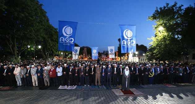 Ayasofya Müzesi önünde 'fetih namazı' kılındı. Anadolu Gençlik Derneği (AGD)’nin çağrısıyla, İstanbul’un fethinin 563. yıldönümünde Ayasofya Müzesi’nin cami olarak ibadete açılması için "Fetih namazı" etkinliği düzenledi.
