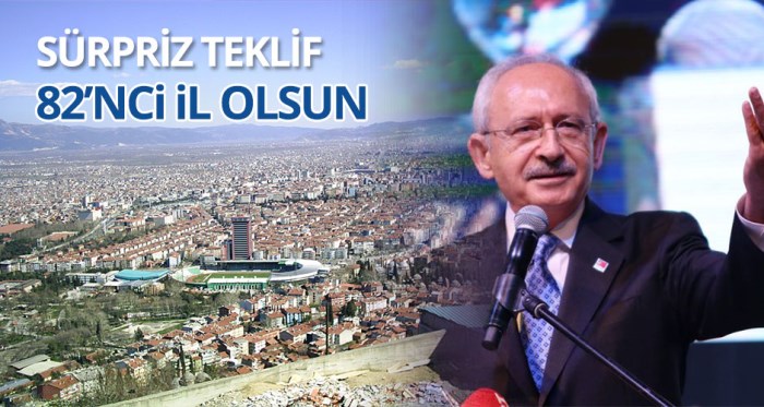 CHP Genel Başkanı Kemal Kılıçdaroğlu'ndan son dakika İnegöl hamlesi geldi. Bursa'nın ilçesi olan İnegöl'ün 82. il olması için CHP lideri Kemal Kılıçdaroğlu ve bazı milletvekillerinin imzası ile kanun teklifi verildi.