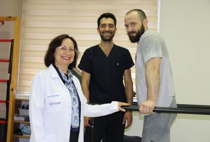 “Bu seferki gelişinde amacımız onu önce paralel barda sonra walker ile yürütebilmek. Burada da adım adım hedefimize ulaşıyoruz. Özellikle Türkiye'deki sağlık sisteminin iyi olduğunu ve Fizik Tedavi merkezimizi araştırmış. Diğer ülkelerin ve bizim ülkemizdeki tedavilerin başarı oranlarını karşılaştırmış ve Türkiye'yi, Eskişehir'deki Fizyomer'i seçmiş. Geçen sefer de merkezimizden çok memnun ayrılmıştı. Aşırı kasılmaları nedeni ile hastamıza Eskişehir'de botoks ile aşırı kas gerginliklerini giderdik. Botoks uygulamalarından sonra da yoğun bir terapi gerekiyor. Ülkesine döndüğünde orada fizik tedaviyi gerçekleştirememiş. Bu nedenle tekrar kurumumuza başvurdu ve yoğun bir tedavi programı ile şu an kendisini walker ile yavaş yavaş adım attırmaya başlattık. Amacımız, hastamızı cihazlarla kendi başına yürütebilmek.”