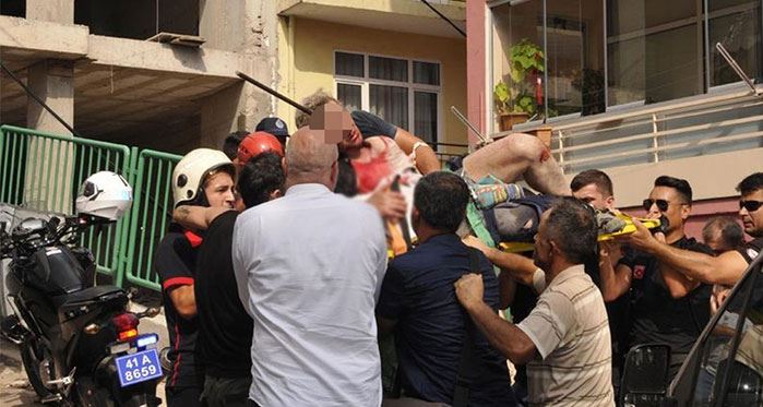 Kocaeli'nin İzmit ilçesinde dengesini kaybederek inşaatın 3. katından zemine düşen işçinin başına demir saplandı.