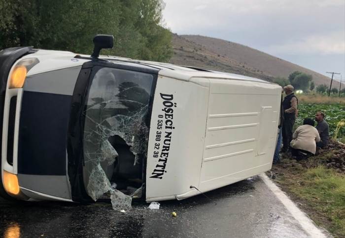 N.Ö (47) idaresindeki 03 SK 383 plakalı tarım işçilerini taşıyan minibüs, Aydın köyü yakınlarında devrildi.