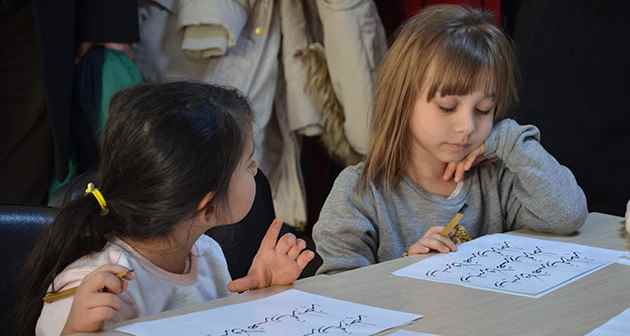 Eskişehir'de Serap Tepedelen isimli kadın hattat, yeni hattatlar yetiştirmek için bir gurup minik öğrencisine ders veriyor.