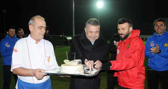 Siyah-Kırmızılıların orta saha oyuncusu Kıvanç Karakaş’ın doğum günü kutlaması önceki akşam idman sırasında gerçekleştirildi. 31’inci yaş gününü kutlayan deneyimli orta saha oyuncusu, pastasını Başkan Mesut Hoşcan’la birlikte kesti. Hoşcan, futbolcuyu tebrik ederek başarılarla dolu nice yıllar diledi.