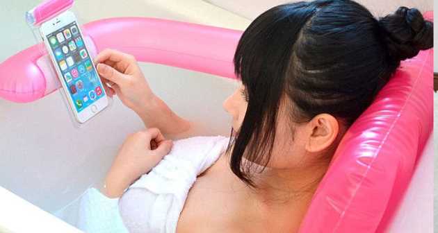 Japonlar'ın son icadı akıllı telefon bağımlılarını sevindirecek! Japonlar duşta akıllı telefon kullanımını kolaylaştırmak için küvete yerleştirilebilen, 'banyo hava yastığı'nı icat etti.