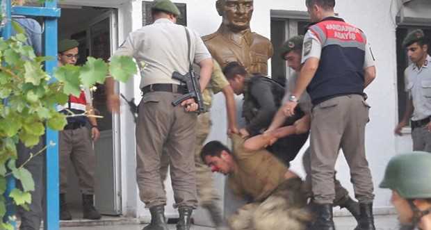 Ula ilçesine bağlı Şirinköy Mahallesi'nde vatandaşların ihbarı üzerine yakalanan 9 darbeci asker, Marmaris ilçesindeki Çetibeli Jandarma Karakolu'ndaki işlemlerinin ardından Muğla Emniyet Müdürlüğüne gönderildi.