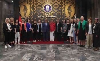 Bir dizi gezi ve incelemeler için Kütahya’ya gelen Türkiye Kadın Muhatlar Derneği Genel Başkanı Serpil Erenoğlu ve yönetim kurulu üyeleri, Belediye Başkanı Prof. Dr. Alim Işık’a nezaket ziyaretinde bulundu. Ziyaret için teşekkür eden Belediye Başkanı Prof. Dr. Alim Işık, “Bugün çok kıymetli misafir grubumuzu Kütahya Belediye’mizde ağırlamaktan duyduğumuz memnuniyeti sizlerle paylaşıyorum. Türkiye Kadın Muhtarlar Derneği’nin Sayın Genel Başkanı Serpil Erenoğlu ve yönetim kurulu üyeleri muhtarlarımıza ve Kütahya’daki kadın muhtarlarımıza çok teşekkür ediyorum. Kütahyalı hemşehrilerim adına şehrimize hoş geldiniz ve Rabim yar ve yardımcınız olsun” dedi.
