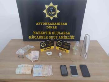 Dinar İlçe Emniyet Müdürlüğüne bağlı Narkotik Suçlarla Mücadele Şube Amirliği ekipleri ilçede uyuşturucu madde ticareti yapan şahıslara yönelik operasyonlarına devam ediyor. Ekipler dün ilçede kontrol için girdiği otelde kalan şahısların odasında arama yaptı. Aramada odadaki kadın şahsın iç çamaşırının içerisinde 11.43 gram eroin ele geçirirken, odada ise 1.10 gram esrar, 1 adet bong aparatı, 2 adet içinde uyuşturucu kalıntıları bulunan poşet, 3 adet cep telefonu, bin 265 TL ele geçirildi. Olayın ardından üzerinden eroin çıkan kadınla birlikte bir kişi daha gözaltına alındı.