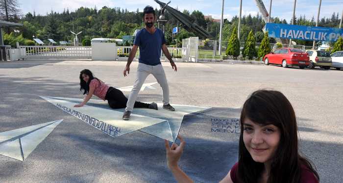Havacılık Parkı'nda üç boyutlu "kağıt uçak" çalışması yapan AÜ Güzel Sanatlar Fakültesi son sınıf öğrencisi Sefa Karaca, AA muhabirine, projenin Maksiov'u 3 boyutlu olarak parka çizdiği ilk Türk sivil uçağı "VECİHİ XIV"ü örnek alarak başladığını söyledi.