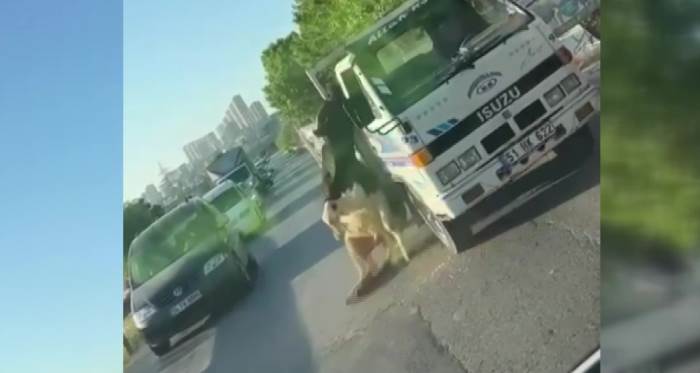 Başakşehir’de büyükbaş bir kurbanlık, kamyonetin kasası yerine üst kısmında taşınınca kaza kaçınılmaz oldu. Boynundan araca bağlı hayvan yere düşerken o anlar kameraya yansıdı.