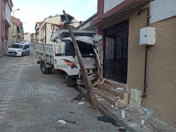 Bilecik’İn Bozüyük İlçesinde Sahibinin Bir Anlık Dalgınlığı Sonucunda Yokuş Aşağı İnen Kamyonet Bir Eve Ve Direğe Çarparak Durabildi.