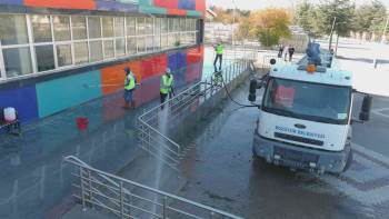 Kapalı Pazar içerisindeki temizlik çalışmalarında tezgâhlar kaldırılarak mazgallar temizleniyor, süpürge aracı ile süpürülüyor ve yıkanarak temizleniyor. Her hafta yapılan genel temizliğin yanı sıra kapalı pazardaki ekipler pazarın açık olduğu günlerde de rutin çevre temizliklerini sürdürüyor. Belirli dönemlerde ise kapalı pazarın dış cephe temizliğini de özenle yapan ekipler dış cepheleri tazyikli su ile fırçalayarak temizliyor.