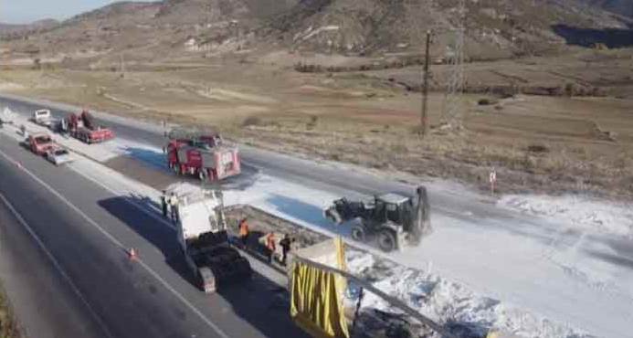 Kara yolunda ilginç görüntü: Kar değil, tonlarca...