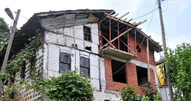 Rize’nin Pazar İlçesi’ne bağlı Suçatı Köyü’nde ölen babalarından miras kalan kesme taş ev, iki kardeş arasında bölünerek paylaşıldı. Kardeşlerden biri kendine düşen bölümü yıkıp yerine yeni ev yapmaya başlayınca ortaya ilginç bir görüntü çıktı.