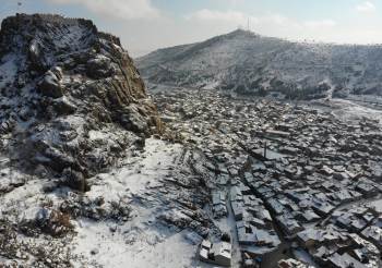 Karla Kaplanan Karahisar Kalesi’Nin Havadan Görüntüsü Büyüledi