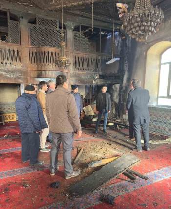 Kaymakam Sezai Demirci, İlçe Jandarma Komutanı Önder Gülez, İlçe Müftü Vekili Usame Karayel ve SYDV Müdürü Ahmet Yılmaz ile birlikte Dere Köy Camisinde meydana gelen yangın sonrası köy camisinde incelemelerde bulundu.