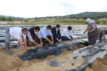 Üreticiler ile beraber Tarım Orman Müdürlüğü ekipleri eşliğinde ilk çilek fidelerini birlikte diken Kaymakam Mehmet Soylu, bu projenin örnek bir proje olacağına inandığını ifade ederek; “Bu proje ile İlçemizde, çilek üreticilerinin teşvik edilerek üretim alanlarının artırılması ve üreticilerimize yeni gelir kaynaklarının oluşturulmasını amaçlıyoruz, Üreticilerimize hayırlı olsun” ifadelerini kullandı.